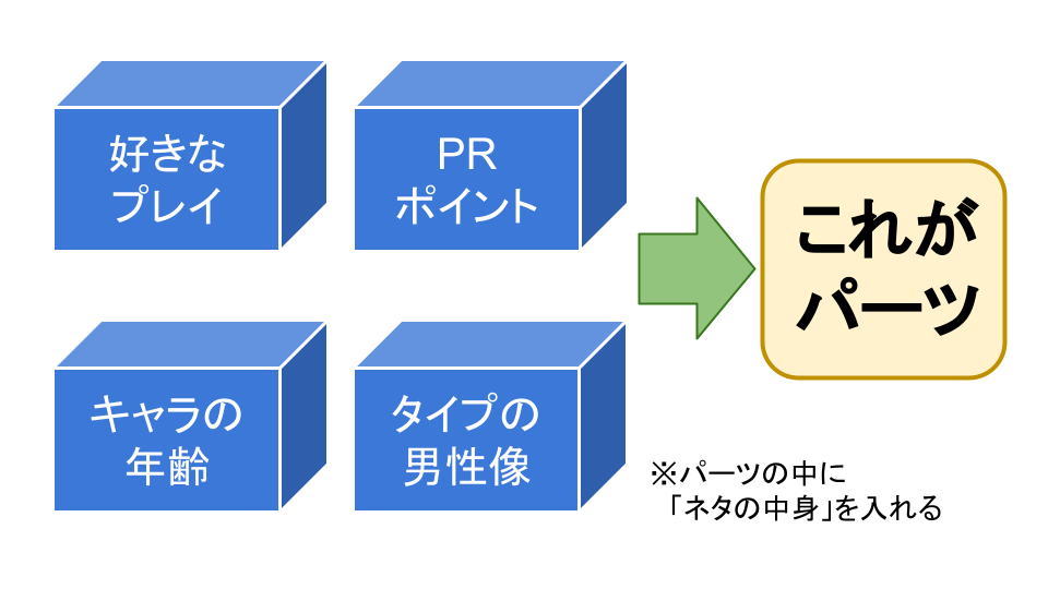 「パーツ」と「ネタの内容」